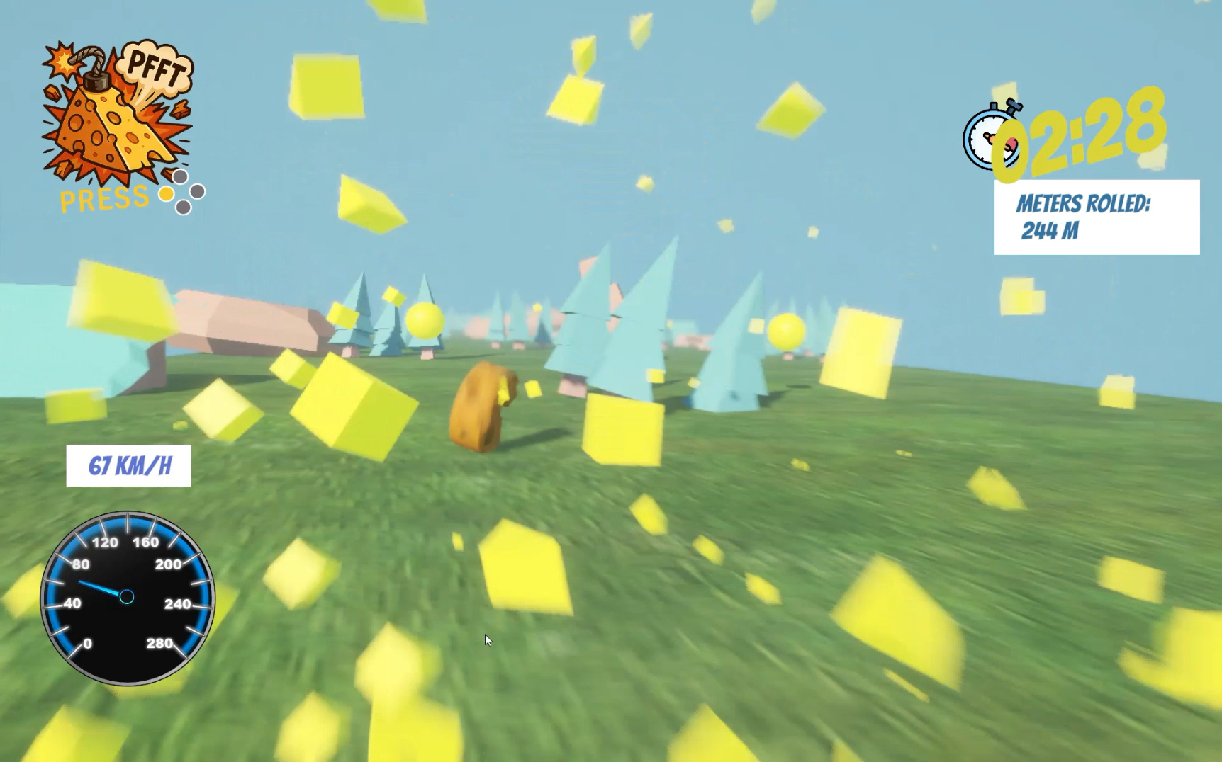 Steer the cheese, avoid obstacles, perform crazy jumps and leave destruction along your way with the CHEESE BOMB!